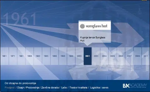 Nakon kupnje lanca Sunglass Hut u 2001. Luxottica postaje svjetski lider u prodaji sunčanih naočala. Osnovan 1971. s primarnim ciljem djelovanja u trgovačkim centrima diljem SAD-a, Sunglass Hut se s vremenom proširio i na druga prodajna mjesta, poput popularnih ulica s trgovinama poznatih marki u centrima gradova, ili pak aerodroma i važnijih cesta. Tijekom godina fokus lanca se proširio na prodaju vrhunskih sunčanih naočala, posebice zahvaljujući usvajanju novog koncepta ekskluzivnih trgovina godine 2007, koji se danas proširuje na sve najbolje lokacije diljem svijeta. Ovo repozicioniranje je također omogućeno značajnim promjenama izbora proizvoda, zahvaljujući kojima se lanac mogao fokusirati na modne i luksuzne marke, posebno za žene, dok je istodobno zadržao širok izbor sunčanih naočala prikladnijih za aktivan životni stil i sportske aktivnosti.